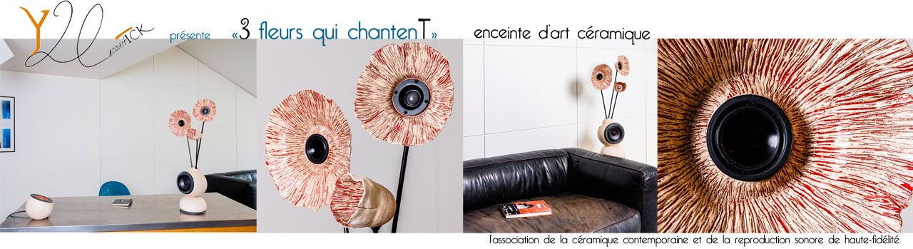 Le modèle "3 fleurs qui chantent " est une enceinte stéréo d'art céramique de haute-fidélité.